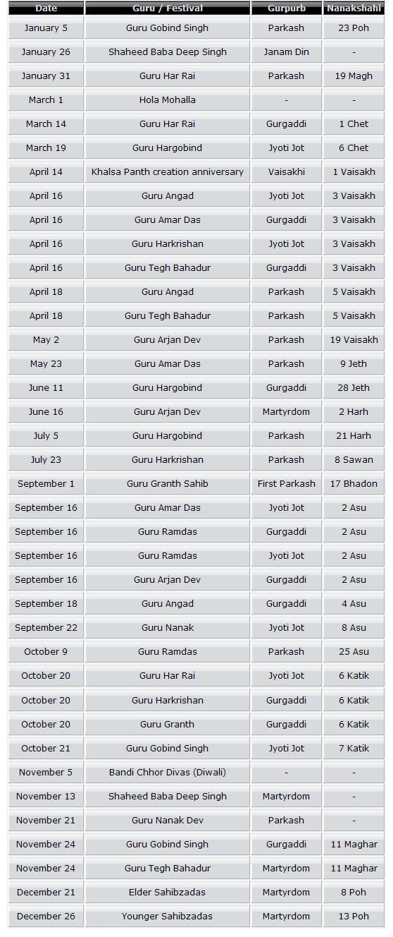 Sikhism - 2011 Calendar